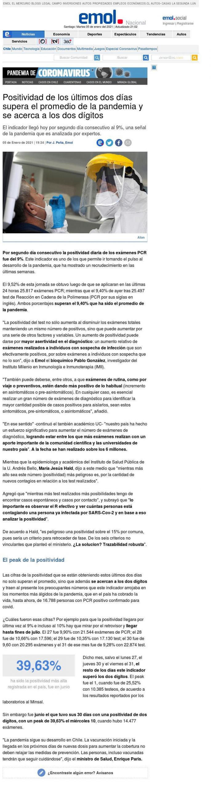 EMOL | Positividad de los últimos dos días supera el promedio de la pandemia y se acerca a los dos dígitos Coronavirus COVID-19 epidemióloga MaríaJesús Instituto de Salud Pública de la U. andrés Bello ISP UNAB María Jesús Hald María Jesús Hald en los medios Pandemia positividad