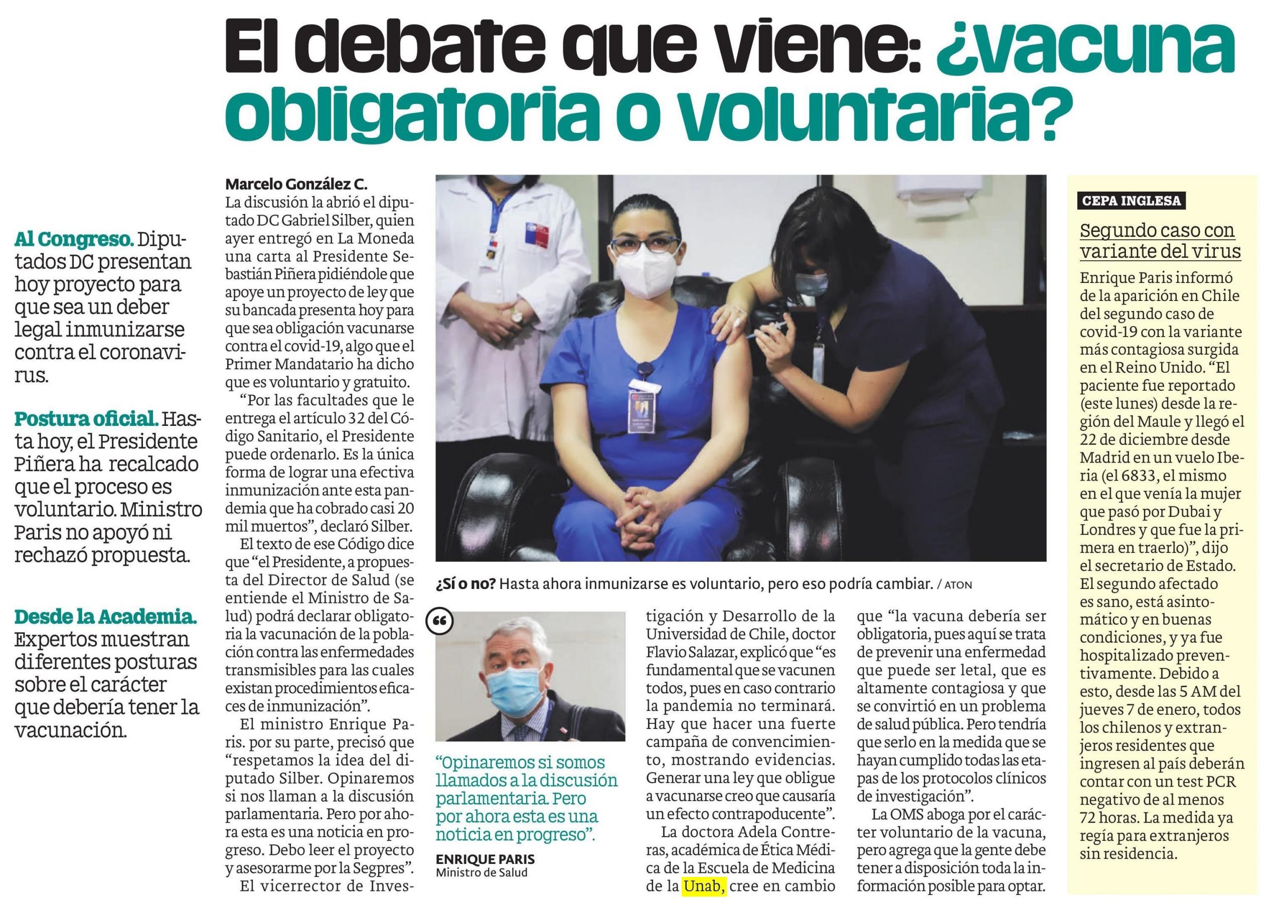 Publimetro | El debate que viene: ¿vacuna obligatoria o voluntaria? COVID-19 Dra. Adela Contreras Escuela de Medicina UNAB Publimetro vacuna vacuna contra COVID